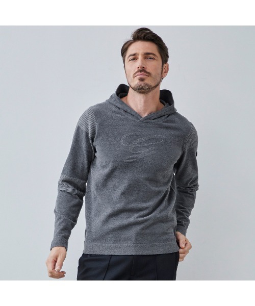 12ゲージ軽く柔らかいモールストレッチパーカー。 一手間かけたプレーティング加工編みで仕上げたプルオーバーパーカー。 [プレーティング加工] 軽くて暖かい特性のモール糸を表と裏で糸の色を変えて表情豊かな編み柄に仕上げています。 耐久性に優れ柔らかい風合いが特徴です。