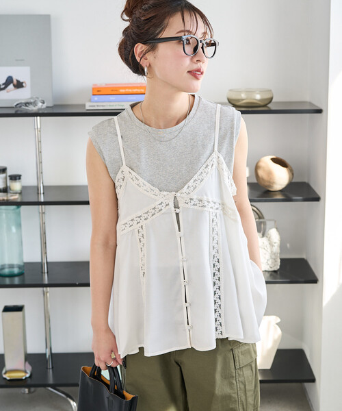 2026 Spring & Summer item 今季も注目のレイヤードスタイルに!一点投入で着こなしが広がるキャミビスチェ ●シャンタン特有の上品な光沢感と、繊細なレースディテールが映えるキャミビスチェ●ランジェリームードを程よく取り入れた、大人カジュアルにも合わせやすいデザイン●胸元はVカット仕様で、レイヤードしてもすっきりとした印象に◎●華奢なレース使いにこだわり、甘さを抑えたバランス感が魅力●肩紐はアジャスター付きで、インナーに合わせて調節可能●ふんわり広がるAラインシルエットで、腰まわりを自然にカバー●旧品番1306248900049にブルーグリーンが新登場! ==========おすすめコーディネートいつものスタイリングに変化をつけたい時に頼れるキャミビスチェ。ぴたっとし過ぎないサイズ感で、Tシャツ・ロンTEE・シャツなど幅広くレイヤードが楽しめます!ボトムはデニムパンツ合わせが王道で、ロゴTやキャップをプラスすれば、肩の力を抜いた大人カジュアルに仕上がります◎同系色のタンクトップを重ねたワントーンコーデなら、ぐっと今っぽく洗練された印象に!---------------------------------------------------------お気に入り登録のオススメ▼商品のお気に入り登録▼再入荷、残り1点、セールなどの通知を受け取ることができます。▼ブランドのお気に入り登録▼新商品や再入荷、ショップのおすすめトピックスなど、いち早くブランドの情報を受け取ることができます。--------------------------------------------------------- ※掲載画像の商品の色味は、屋外や屋内の光の照射や角度により実物と色味が異なる場合がございます。また表示のサイズ感と実物は若干異なる場合もございますので、予めご了承ください。 ※寄り画像の色味が実物に近しいです。 ※着用、お取り扱いの際は、商品についている品質表示とアテンションタグを必ずご確認下さい。 ※こちらの商品はオンラインストア及び一部店舗での限定展開となります。【FREAK'S STORE/フリークスストア】「アメリカの豊かさとワクワク・ドキドキを日本に伝えたい」という想いからスタート。1986年の創業以来、洋服、雑貨、インテリアなど自分たちが本気でカッコ良いと思うものをセレクト。積極的に楽しむ生活体験者=フリークとして、アメリカンライフスタイルの楽しみ方を提案するセレクトショップです。
