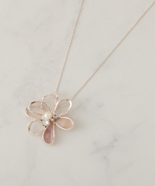 【デザイン】 ゆるやかな曲線で描いたオープンペタルと塗りの入ったソリッドペタルを重ねた立体的な花モチーフが特徴。 中央の小粒フェイクパールが華やかな焦点となり、細めのダブルチェーンが縦ラインを作って顔まわりをすっきり見せます。 フェミニンながらモダンな印象で、オン/オフ問わず使いやすいデザインです。 【コーディネート】 上品なデザインなのでオンからオフまで幅広いニーズに活躍できるかと思います。 【おすすめポイント】 スライドパーツででお好みのバランスに調整可能。 【カラー】 005 ピンクシルバーカラーメッキ ピンク系エポ 006 シルバーカラーメッキ ブルーグレー系エポ 007 ゴールドカラーメッキ ベージュ系エポ ※照明の関係により、実際よりも色味が違って見える場合があります。また、パソコン・スマートフォンなどの環境により、若干製品と画像のカラーが異なる場合もございます。 店舗へのお問い合わせ商品番号:C70-85018 ●製品寸法: 00:全長72cm モチーフH3.8cm モチーフW3.8cm 備考: