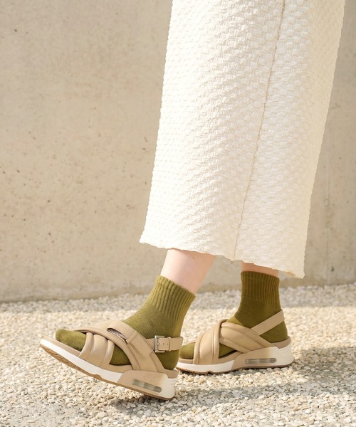 【ASH公式ショップ】2026年 Spring&Summer COLLECTIONASHで人気のエアーソールデザインのスポーツサンダル。甲部分のクロスデザインのベルトは、モチっとした柔らかなレザーの素材感が足当たりよく、甲を包み込むようにフィットします。また、甲部分はやや高めに設計されているため、締め付け感が少なくリラックスした履き心地も魅力です。ワンカラーで仕上げたミニマルなデザインは、カジュアルからきれいめ、モードなスタイリングまで様々なコーデに活躍しそう。ソックスと合わせれば、スニーカー感覚で履いていただけるだけでなく、 スニーカーよりも抜け感があるので、春先から軽やかな雰囲気を楽しんでいただけます◎安定感のあるウェッジソールは快適な履き心地を叶えてくれ、デイリー使いにはもちろん、旅行などのたくさん歩く日の足元にもおすすめの一足です。■ソール、つま先、かかと部分にはヴィンテージ加工が施されております。■天然皮革の為、色むらや軽微な傷等が残っていることがあります。これらは全て革製品の特性ですので予めご了承下さい。