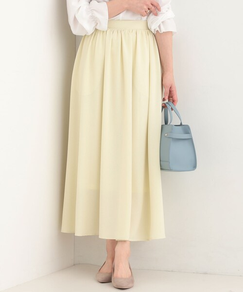【デザイン】 ドット柄・無地・花柄のアソート展開で、それぞれ違った雰囲気を楽しめるフレアスカート。 ほどよいボリューム感と軽やかな素材で、動くたびにふんわり揺れる女性らしいデザインです。 ウエストゴムでリラックス感のある穿き心地です。 通常丈とショート丈で着丈が選べるのが嬉しいポイントです。 【スタイリング】 ブラウスやきれい目なニットを合わせて上品な着こなしや、ジャケットを合わせて通勤にもお使いいただけます。 ロンTなどと合わせたカジュアルダウンした着こなしもできます。 1枚で着映えし、ふんわり感で体系カバーもしつつきれいに見せてくれます。 【素材】 サラッとした素材を使用しています。 【仕様】 ・ポケット数:横×2 ・ウエスト後ろゴム ・裏地あり ※こちらの商品はやや透け感があります。 ※照明の関係により、実際よりも色味が違って見える場合があります。また、パソコン・スマートフォンなどの環境により、若干製品と画像のカラーが異なる場合もございます。 モデル情報:身長163cm B81 W59 H88 着用サイズ:02(M) 店舗へのお問い合わせ商品番号:C62-75309 ●製品寸法: 00(FREE):W67~100cm H157cm 総丈89cm 11(ショート丈):W67~100cm H157cm 総丈79cm 備考: