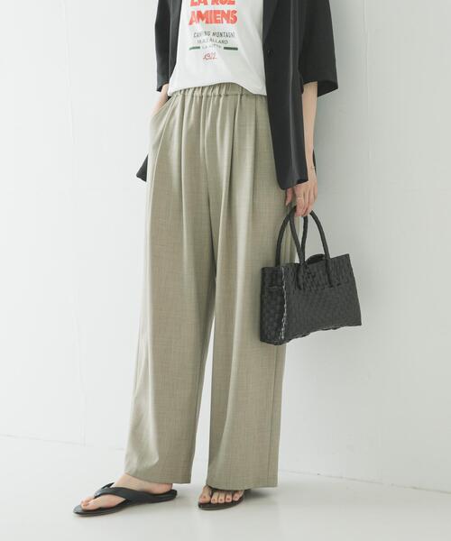 シーズンレスで活躍し、着回し力とイージーな穿き心地を両立したストレートパンツ。 昨年ご好評いただいた人気アイテムが、新色を加えた全4色の豊富なラインナップで今年も登場しました。柔らかくストレッチの効いたレーヨン混素材を使用することで、上品な落ち感を出しつつ、リラックス感のある穿き心地を実現しています。 どんな体型の方にも馴染みやすいストレートシルエットは、広がりすぎず、あらゆるトップスと好相性。ウエストのドロスト仕様が気になる腰まわりをすっきりと見せ、内側の紐で細かなサイズ調節も可能なため、自分にぴったりのフィット感で着用いただけます。 シワになりにくいイージーケア素材も嬉しいポイント。 シャツやジャケットを合わせたきれいめな装いから、カジュアルなカットソーまで、毎日手に取りたくなる万能な一着です。 POINT ・ご自宅でのお手入れが簡単なイージーケア素材 ・サイズ調節が自在でストレスフリーなウエストゴム仕様 ・カジュアルになりすぎない、上品な質感のレーヨン混素材 【2026 Spring/Summer】【26SS】 ※この商品の(バック)ポケットはフェイクです。予めご了承ください。 ※商品画像は、光の当たり具合やパソコンなどの閲覧環境により、実際の色味と異なって見える場合がございます。予めご了承ください。 ※商品の色味の目安は、商品単体の画像をご参照ください。 ▼お気に入り登録のおすすめ▼ お気に入り登録された商品は、マイページにて現在の価格情報や在庫状況の確認が可能です。 お買い物リストの管理にぜひご利用ください。 素材感 透け感 : なし 伸縮性 : ややあり 裏地 : なし 光沢 : なし ポケット : あり BROWN:162cm(38) / 152cm(36) 384036