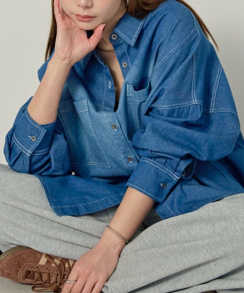 ------------------------------------------------------ loose&tight Fit 楽してキレイに。 30s.変化するlifestyle.変化するからだ. 𝗲𝗻 𝗵𝗮𝘂𝘁 は忙しい日常を力強く生きる すべてのたたかう女性たちへ寄り添い そっと背中を押し、もっと自分を好きになれる ものづくりとアイテムをご提案します。 ------------------------------------------------------ 時を経て愛されたような、奥深いフェード感と質感を纏う。 素材には、しっかりと度詰めされた綿100%の本格派デニムを採用しました。 天然コットン特有のドライな肌触りと、着込むほどに自身の体に寄り添うような柔らかさが特徴です。 専門的なヴィンテージ加工を施すことで、縫製部分に現れるパッカリング(縫い目のシワ)や 絶妙なコントラストを描く色落ちを再現。単なる中古加工ではなく、長年大切に着古されたアーカイブのような 自然で立体的なフェード感を追求しました。適度な厚みがありながらも、綿100%ならではの通気性と吸湿性を備えているため、 季節の変わり目の羽織りとしても、真冬のレイヤードピースとしても、そのタフな風合いを損なうことなく長く愛用いただけます。 現代的な空気感を反映させた、オーバーサイズのシルエットが際立つデニムシャツです。 最大のこだわりは肩ラインを大胆に落としたドロップショルダーと、身体を包み込むようなゆとりのある身幅が生み出す、 計算されたリラックスフォルム。大きめのサイジングながら、襟元やカフスの芯地を調整することで、 だらしなく見えない「大人のためのきれいめカジュアル」な佇まいを構築しました。 裾は緩やかなラウンドカットに仕上げており、ボトムインでもアウトでもバランス良く決まります。 フロントのボタンを閉めれば端正なシャツとして、開ければ軽快なライトアウターとして機能し 一着で幾通りものスタイリングの核となる、汎用性の高い仕立てとなっています。 おすすめのコーディネートは、センタープレスの効いたスラックスや、艶やかなサテン素材のナロースカートを合わせることで、 デニムの無骨さと都会的なエレガンスをミックスさせるスタイルです。シャツの袖をラフに捲り上げ、手首を見せることで抜け感をプラス。 インナーにコンパクトなロゴTシャツやシアータートルを忍ばせれば、奥行きのあるレイヤードが完成します。 また、同色のデニムパンツを合わせた「デニム・オン・デニム」の着こなしに、華奢なヒールや上質なレザー小物を投入すれば、 ワンランク上のモードな装いに。カジュアルな素材だからこそ、仕立ての良さが際立つ、大人のワードローブに欠かせないマスターピースです。 ■商品画像について 商品画像はできる限り実物の色に近づけておりますが、 モニターやブラウザの環境により、実際の商品と多少色見が異なって見える場合もございます。 ◆生産時期によりお色味が若干異なる場合がございますので、ご了承ください。 ▼商品のお気に入り登録 完売カラーの再入荷通知や、ラスト1点の通知、セールの通知などお得な情報が受け取れます! ▼ブランドのお気に入り登録 新商品や再入荷など、いち早くブランドのお得な情報を受け取ることができます。