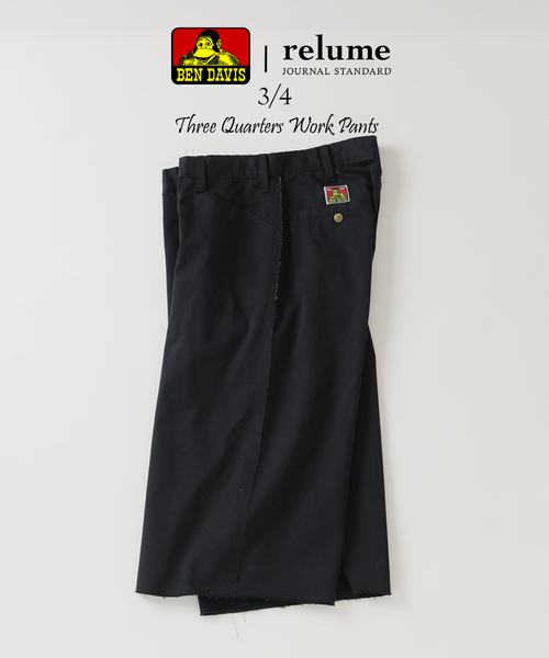 BENDAVIS*relume Three-Quarter Pants BEN DAVISの極太名品「Gorilla Cut」を、大胆にカットオフ。 ワークパンツをモードに昇華させた、relumeだけのスペシャル別注。 老舗ワークウェアブランド「BEN DAVIS(ベンデイビス)」とのコラボレーションモデル。 ブランドを代表する、最も太いシルエットの「Gorilla Cut(ゴリラカット)」をベースに採用しました。 その迫力あるボリューム感はそのままに、レングスを「スリークォーター(3/4丈)」に再構築。 足首を見せるクロップド丈にすることで、重厚なワークパンツに軽快さと抜け感をプラスしました。 ■ラフな表情を作る「カットオフ仕様」 ウエスト、裾、脇の縫製部分にあえて「カットオフ(切りっぱなし)」加工を施しました。 ほつれたようなラフな表情が、ワークウェア特有の土臭さを中和し、グランジやモードのエッセンスを感じさせる今っぽい仕上がりに。 ■タフな「T/Cツイル素材」 ガシガシ穿いて洗える、耐久性に優れたT/C(ポリエステル/コットン)ツイル生地を使用。 ハリのある素材感が、ワイドシルエットの立体的なフォルムを美しくキープします。 【取り扱い上のご注意】 この商品はファッション性を重視しヴィンテージ加工を施しています。 ご購入・ご使用の際は、以下の点に十分ご注意ください。 ・ダメージの進行について: カットオフ(切りっぱなし)のダメージ部分では、着用や洗濯を繰り返すことでダメージ(穴あき・ほつれ等)が進行します。 ・お洗濯について: 洗濯の際はダメージの進行を避ける為、単独で洗濯ネットに入れて洗ってください。 【BEN DAVIS / ベンデイビス】 1935年カリフォルニア州サンフランシスコ市でスタートしたアメリカを代表するワークブランドの老舗BEN DAVIS(ベンデイビス)は、当時Levi Strauss & Co(リーバイス社)で働いていたサイモン・デービスが、息子ベンの名を冠して立ち上げたブランド。 ベンの祖父にあたるヤコブ・デイビスはポケット・リベットを発明し、リーバイ・ストラウスと共同出資のもと、特許をとった事でも有名だった。タフなワークウェアブランドとして本国でも知名度・人気共に高く、日本でも幅広いシーンから高い評価を受けている。 ********************** 【スタッフ着用コメント】 《スタッフH》 身長:174cm/体重:60kg/体型:中肉中背/普段サイズ:M/着用サイズ:M サイズ感:ウエストは少しゆとりがあります。「ゴリラカット」ベースなので、太ももから裾にかけてはかなり太いです。 素材感:ワークパンツらしい、ガシッとした硬めのT/Cツイル生地。シルエットが崩れず綺麗に出ます。 着心地:全体的にワイドなので肌に張り付かず、風通しが良いです。足首が出る丈感なので、ソックス合わせも楽しめます。 ********************** 【画像についてのご注意】 ※照明の関係により、実際よりも色味が違って見える場合があります。 またパソコン・スマートフォンなどの環境により、若干製品と画像のカラーが異なる場合もございます。 ※商品の色味は、商品アップ画像をご参照ください。 【商品のお気に入り登録について】 「カートに入れる」右側のハートマークを押していただくと、 残り1点、セールなどの通知を受け取ることが出来ます。 【再入荷お知らせについて】 「カートに入れる」から「再入荷お知らせ」を押していただくと 完売した商品が再入荷した際に、通知を受け取ることが出来ます。 本体:手洗い可能