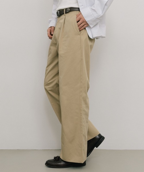 ▼DESIGN チノ素材でありながら、スラックスのような上品さを感じられるよう設計した一本。 フロントにワンタックを施し、腰まわりに程よいゆとりを持たせながら、裾に向かって緩やかに広がるセミフレアシルエットに仕上げています。 カジュアルになりすぎず、きれいめなスタイリングにも自然に馴染むバランスに整えました。 フレア特有の主張を抑え、脚のラインがすっと綺麗に見えるようパターンを調整しているため、スタイリングの幅が広く、LURAKUらしい洗練された印象にまとまります。 適度にハリ感のある生地を採用しており、シルエットを保ちながらも軽やかな穿き心地です。 通年着用できる汎用性の高さも魅力のひとつです。 ▼STYLING チノ素材ならではの汎用性の高さがあり、コーディネートの幅を自然に広げてくれる一本。 程よく上品な印象が加わることで、シンプルなスタイリングでも大人っぽくまとまります。 LURAKUで人気のリジットデニムジャケットなど、デニムアイテムと合わせることで、スタイリングに奥行きが生まれます。 足元は革靴からスニーカーまで合わせやすく、シーズンを問わず活躍します。 ▼LURAKU 誰もが自分らしい幸せを見つけて欲しい。 LURAKUは、愛を込めた愉楽な経験を届けます。 ▼身長別推奨サイズ Sサイズ:~168cm Mサイズ:169cm~173cm Lサイズ:174cm~
