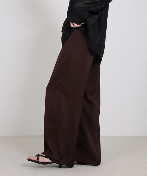 -point- & -styling-とろみあるサテン生地と滑らかな落ち感で、気負わず上品に整う1枚。ソフトな肌触りとしなやかな落ち感で快適な着心地に。ウエストは総ゴムでラフな着用感ながらもほんのり艶を纏ったサテン生地が動くたびに上品さを演出。体型を拾わないワイドストレートで大人の余裕を感じさせスタイリングに入れるだけで一気に洗練されたムードに。デイリーはもちろんオケージョンにもおすすめなアイテムです。※同素材のキャミソール(品番:ve326042)とセットアップで着用可能です。ウエストゴムサテンパンツ----------------------------素材 アイボリー:(表地)ポリエステル100% (裏地)ポリエステル100% ブラウン・ブラック:ポリエステル100% ----------------------------伸縮性 なし生地の厚さ ★★☆☆☆裏地 あり(アイボリーのみ)----------------------------※モニター・環境等により実際の商品と多少色味が異なって表示される場合がございます。 予めご了承をお願いいたします。=======================■袋梱包の為、染料による特有の匂いが抜けきれず、匂いがする場合がございますが不良品にはあたりません。 上記注意点での返品、交換はお断りします。ご了承の上お買い求めくださいませ。■本製品は生産過程におきまして色味、サイズ感等若干の誤差が出る場合がございます。予めご了承くださいませ。=======================【お買いものをお楽しみいただく為に!】▼商品のお気に入り登録完売カラーの再入荷通知や、ラスト1点の通知、セールの通知も受け取ることができます。▼ブランドのお気に入り登録新商品や再入荷など、いち早くブランドのお得な情報を受け取ることができます!