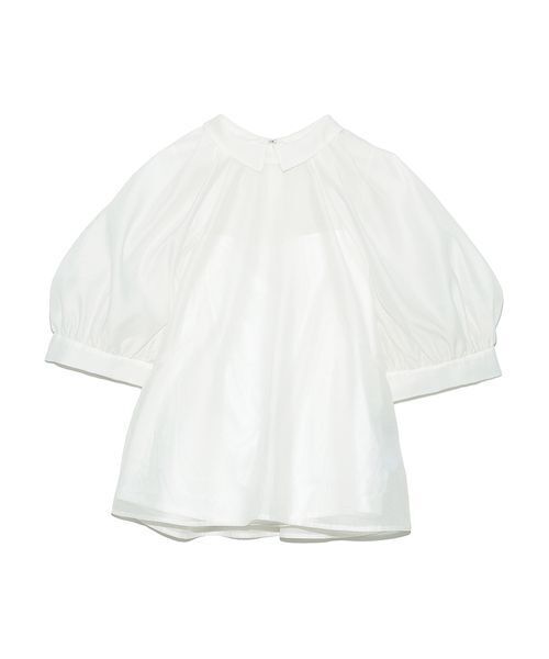 柔らかなスパン糸をヨコ糸に使用した、軽やかなオーガンジー素材。シルクのような織りの表情と控えめな光沢が、上品な印象を引き立てます。 ポリエステル100%でシワになりにくく、ご自宅で洗えるウォッシャブル仕様。 身頃にはラグラン風の切り替えと立体的なタックを施し、動きやすさと華やかさを両立。 袖口にはたっぷりとギャザーを入れ、内側のチュールがふんわりとしたフォルムをキープします。 やや広めの袖口が腕をすっきりと見せるデザインです。 ウエストにダーツを入れ、裾まで美しいシルエットに。 後ろファスナー開きで、かぶりでも着脱しやすく。 優しい印象の小さめの衿が顔まわりを柔らかく見せ、ボトムとも好相性。同色のインナーキャミソール付きで安心して着用いただけます。 透け感:有り 裏地:インナーキャミソール付き 伸縮性:無し 光沢感:無し 生地の厚さ:薄手 ※照明の関係により、実際よりも色味が違って見える場合があります。 またパソコン・スマートフォンなどの環境により、若干製品と画像のカラーが異なる場合もございます。予めご了承ください。 商品の色味は、商品単品画像をご参照下さい。 ※商品画像はサンプルのため、色味やサイズ等の仕様に変更がある場合がございますので、予めご了承ください。