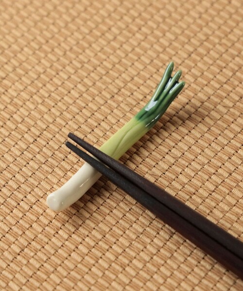 食卓で話題が弾むきっかけに ■デザイン・デティール 岐阜県瑞浪市にある創作箸置きをつくる陶磁器工房〈イホシロ窯(イホシロカマ)〉の箸置き。 食品・料理をモチーフに職人が一つひとつ丁寧に製作しています。ユニークな箸置きは、おもてなしの心が伝わり、話題の弾むきっかけにもなります。 ■サイズ 九条葱:約8.5×1cm しいたけ:約4cm×4cm 京人参:約9cm×2cm 大葉:約7.5cm×5cm なす:約5.5cm×2cm ※サイズはおおよそになります。ひとつひとつ職人が丁寧に作っているため、形やサイズ、商品によっては絵付けの雰囲気や柄などに多少の個体差がございます。予めご了承ください。 ■お取り扱い上の注意 ※電子レンジ、食洗機のご使用はできません。 ※割れ物のため、落下にはご注意ください。 ※シミやカビの原因になるため、つけ置きせず、洗った後はすぐに拭いて乾燥させてください。 ※水分が残っていたり、湿気の多い場所で保管されると串部分にカビが発生する恐れがございますので、ご注意ください。 ※お子様が誤って口に入れないよう、管理には十分お気をつけください。 素材の性質上「貫入」と呼ばれるひび割れのような模様があるものがございますが、陶器ならではの味わい深い表情、商品特性のの一つです。予めご了承ください。 イホシロ窯 創作箸置き工房〈イホシロ窯〉は、国内最多の500種類超の箸置きを大量生産ができる機械加工の方法は行わず、一つひとつ手作業で製作しています。一般的に陶磁器の焼成のためのエネルギーはガスを使用しますが、〈イホシロ窯〉では社屋の屋根に設置した太陽光発電設備を使い焼成しています。