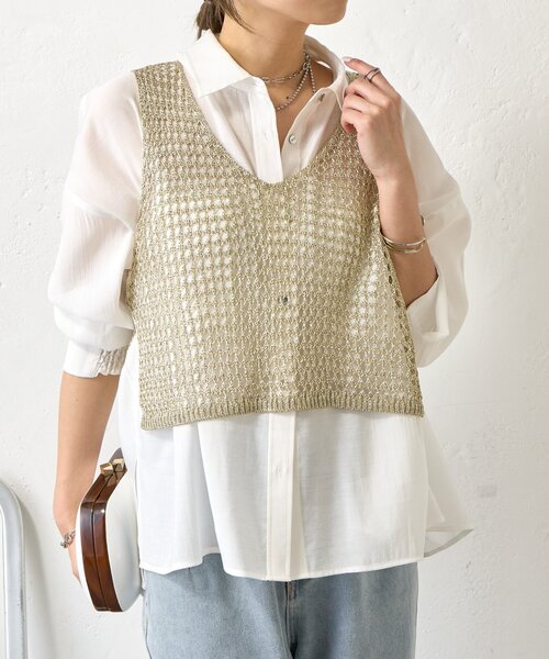 -商品ポイント- ・コーデに華やかさをプラスするメタリックヤーンベスト。 ・シンプルコーデに重ねるだけで今年らしい着こなしが完成。 ・きらっと上品に輝くメタリック糸が、派手過ぎず大人のスタイリングに馴染みます。 ・ゆとりがあり重ねても窮屈感なく着用◎ ・シャツやカットソー、ワンピースとも相性抜群。 ーマテリアルー ■透け感:あり ■裏地:なし ■伸縮性:なし ■光沢感:あり ー洗濯方法ー 手洗い可能 ー注意事項ー 商品の画像はできるだけ実物に近い色味で掲載しておりますが、ご覧になるモニターや照明の環境により、実際の色味と若干異なって見える場合がございます。 あらかじめご了承くださいませ。 ・画像の商品はサンプルです。 実際の商品と仕様、加工が若干異なる場合があります。 ・サイズ表記はあくまで目安となります。 __________________________________ ※取り扱いについては、商品についている品質表示でご確認ください。 ※照明の関係により、実際よりも色味が違って見える場合があります。 またパソコン・スマートフォンなどの環境により、若干製品と画像のカラーが異なる場合もございます。予めご了承ください。 ※詳細画像の色合いをご参照ください。予めご了承ください。 __________________________________ 【お買い物をよりお楽しみいただくために♪ 】 ▼ 商品のお気に入り登録 お気に入りアイテムのお値下げ・再入荷・在庫ラスト1点など通知を受けることができます。 ▼ブランドのお気に入り登録 Jena espace merveilleuxの新商品や再入荷、セール、クーポン配布などお得な情報を受けることができます。