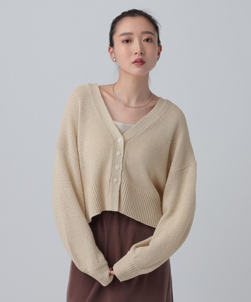 清涼感のある素材がポイントのカーディガン 【デザイン】 ドライタッチな糸を使用し、ポコポコと凹凸のあるカノコ編みで仕上げたカーディガンです。ボリュームのある袖と抜け感のあるVネックデザインで、すっきりとした着丈でスタイルアップが叶います! 【スタイリング】 ・肌寒い時期はタートルネックのインナーを合わせたスタイリングがおすすめです。 ・裾レイヤードインナーを合わせた着こなしも◎ --------------------------------------------------- 【気になる商品はお気に入り登録がおすすめ!】 ・在庫残りわずか ・再入荷 ・セールの情報 などの通知を受け取ることができます。 気になる商品は♡をクリックして、 「お気に入り登録」しましょう! 【ショップ・ブランドのお気に入り登録も!】 新商品や再入荷、セール、クーポンの配布など、 いち早くお得な情報を受け取ることができます。 ---------------------------------------------------