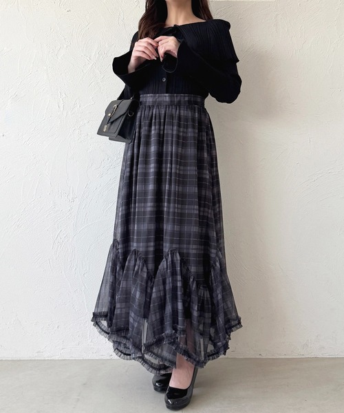 【骨スト向け企画アイテム🦴】 ◆骨ストも綺麗に履けるチュールスカート *骨格ストレートはもちろん、骨格ウェーブ、ナチュラルの方も可愛く着用していただけます。 揺れ感が大人可愛いチュールスカート。 履いた時のシルエットにこだわっているため、チュール素材ながら着膨れを回避できる優れもの。 裾は波を打つようなアシメデザインになっており、揺れ感が綺麗に出てくれます。 さらに、ミニフリルが施されておりさりげない甘さをプラス。 程よいボリューム感が可愛らしく、全体のバランスも◎ 裏地はしっかりめの素材感のため、アイボリーでも透け感を気にする心配なし! オールシーズン着回せるため、1枚持っておくと便利なアイテムです。 《point》 ・腰回りのギャザーの分量が控えめのため、腰回りが盛り上がらずすっきりとした着用感に。 ・ウエストのサイドはギャザーをなしに設計しているため、より綺麗に着用が可能に。 ・膝下まではすとんと落ちるようなIラインに近いシルエットで細見えが叶う。 ・ウエスト後ろがゴム仕様かつ、部分的にゴムを入れているため腰にフィットしやすく綺麗に履ける --------------------------------------- 透け感:あり 裏地:あり 伸縮性:ウエスト後ろゴム仕様 --------------------------------------- ※ご覧のモニター環境や撮影環境により 実際の商品と多少色味が異なって見える場合がございます。 ご理解の程よろしくお願いいたします。 【お買い物をよりお楽しみいただく為に♪】 ▼商品のお気に入り登録をおすすめします ♡をクリック! 完売カラーの再入荷や、ラスト1点の通知、 セールの際の通知を受ける事ができます。 ブランドのお気に入り登録も ご一緒にお願い致します