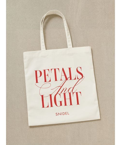 【デイリー使いにちょうどよい、たくさん入る上品ロゴトートバッグ】【Design/Styling】大胆なロゴプリントを施した、エレガントな雰囲気のコットン生地のトートバッグが届きました。サブバッグとしても大活躍の万能アイテムです。フロントに、「PETALS and LIGHT」(淡い色と光)とSNIDELロゴをプリントしました。内側にカード類などが小分けにできるポケットが付いています。ホワイト(ロゴがレッド)、今季らしい淡い色味のオレンジ(ロゴがライラック)、ダークネイビー(ロゴがホワイト)の3色展開にてご用意しました。※照明の関係により、実際よりも色味が違って見える場合があります。またパソコン・スマートフォンなどの環境により、若干製品と画像のカラーが異なる場合もございます。予めご了承ください。商品の色味は、商品単品画像をご参照下さい。 ※商品画像はサンプルのため、色味やサイズ等の仕様に変更がある場合がございますので、予めご了承ください。
