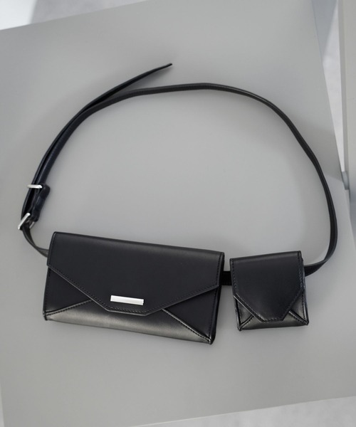 ーーー 実用性とファッション性を兼ね備えたウエストバッグ ーーー point □大きさの異なる二つのミニポーチが付いているウエストバッグ □横長ポーチはスマートフォンやカードケース、パスポートなど、平たい貴重品の収納に最適 □スクエア型ポーチは ワイヤレスイヤホン、鍵、リップといった小物を分けて収納が可能 □滑らかな質感のフェイクレザーがモードな印象 □シルバープレート付きでシンプル過ぎないデザイン styling バッグとしてだけでなくコーデのアクセントとして使えます。 ジャケットやコートの上から巻いてシルエットにメリハリをつけたり、ハイウエストのパンツやワンピースにウエストマークしたりするのがオススメです。 また、ボディバッグ風に斜め掛けにしてカジュアルダウンする使い方も◎ ※加工を施した画像を使用しております。 実物と色味が異なる可能性があるため、色味は詳細後ろにある生地寄り画像を参考にお願いいたします。 あらかじめご了承下さい。