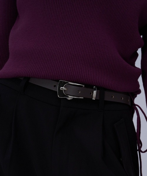 ーーー 大きめなスクエアバックルがポイントのナローベルト ーーー point □華奢すぎないバックルのナローデザインで存在感のあるベルト □スカート合わせ、パンツ合わせどちらも上品な印象で使える □ブラウン55はワンポイントでトレンド感を入れたい方にオススメ □ブラック09はコーデの全体を引き締めてくれる styling コーディネートに差すだけでナローシルエットが洗練さと上品さをプラスしてくれます。 スラックスなどのキレイめなアイテムやフレアスカートなどのフェミニンアイテムからデニムなどのカジュアルアイテムまで幅広いジャンルに馴染んでお使いいただけます。 トレンドや季節に左右されないので1本持っておくと使いまわしができて◎ ※加工を施した画像を使用しております。 実物と色味が異なる可能性があるため、色味は詳細後ろにある生地寄り画像を参考にお願いいたします。 あらかじめご了承下さい。