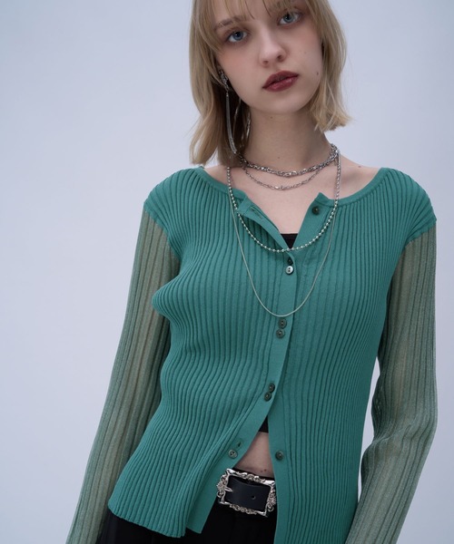 ーーー 気温対応しやすい袖シアーの クルーリブニットカーディガン ーーー point □袖シアーデザインで端境期に着やすく気温対応がしやすいデザイン □短すぎないショート丈で合わせやすい □首元がスッキリとしたクルーネックで抜け感が出せる □身頃は接触冷感のニット糸を使用しており、快適な着心地 styling 骨格ナチュラル:ラフに羽織るスタイルが似合います。ワイドパンツやカーゴパンツ、ロング丈のマキシスカートなど、ボリュームのあるボトムスで上下のバランスをとると、こなれ感が出て非常におしゃれです。 骨格ウェーブ:ハイウエストのフレアスカートやタイトなミニスカート、あるいはタック入りのスラックスがおすすめ。ボタンを上まで留めず鎖骨をみせると華奢な首元を綺麗にみせることができます。 骨格ストレート:インナーはキャミソールなどの薄手のものと相性◎センタープレスのストレートパンツや、タイトスカートなど、Iラインを強調するボトムスを合わせると、リブの縦ラインと相まってスタイルアップします。 ※加工を施した画像を使用しております。 実物と色味が異なる可能性があるため、色味は詳細後ろにある生地寄り画像を参考にお願いいたします。 あらかじめご了承下さい。