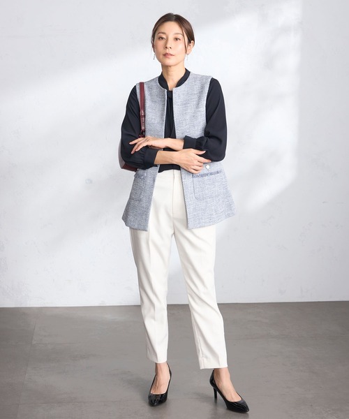 春スタイルに鮮度をプラスしてくれるツイードジレ 【機能/素材】 ツイード生地を使用してエレガントな印象に。 【デザイン】 顔まわりをすっきりと見せるラウンドネック。 左右に配置したパッチポケットにはフリンジときらりと光るゴールドボタンを添えてワンポイントに。 【お勧めスタイリング】 腰まわりをカバーする着丈はパンツやIラインシルエットのスカートと相性良く着こなせます。 【GALLORIA /ギャロ―リア】 ベーシックだけじゃ物足りない、ほどよくトレンドを取り入れ シーンレスにきちんと見える。 そんな願いを叶えてくれる、いまの空気感をまとった大人のデイリー服「GALLORIA」 買いやすいプライスで、バリエーション豊富に揃う ライフスタイルに寄り添うコレクションを展開します。 ◆Instagram:@galloria.sns 公式Instagramでは最新情報を定期的に更新中!フォローしてお得な情報をゲット! ■商品のお気に入り登録のおすすめ■ 完売カラーの再入荷通知、ラスト1点、お得なクーポンやお値下をお知らせします。 ■ブランドのお気に入り登録のおすすめ■ 新商品や再入荷のお知らせ等、ブランドのお得なクーポンやお値下をお知らせします。