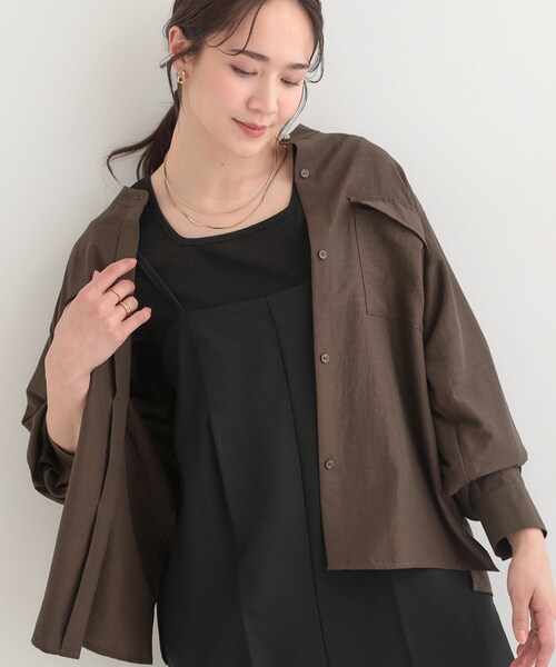 【デザイン】 バンドカラーですっきり仕上げたデザインシャツ。 ボタンを隠す仕様で大人っぽく着れる1枚に。 一番上の金ボタンとフロントのダブルフラップポケットがさりげないアクセントになり、 シンプルながらも表情のあるアイテムです。 着回し力の高い無地3色と、よりすっきり見えるストライプ柄の4色展開です。 【スタイリング】 デニムやワイドパンツと合わせて、大人のカジュアルコーデにピッタリです。 前を閉じてきれいめにも、軽く羽織ってラフにも着られるアイテム。 ストライプはコーデのポイントに、無地はオンオフ問わず活躍します。 【素材】 サラッと柔らかいシャツ素材を使用しています。 ※お洗濯後シワになりにくいイージーケア機能付き ※元々ワッシャー加工が施されており、ナチュラルな風合いを楽しむことができ、シワも気になりにくい生地になっております。 【仕様】 ・ポケット数:前×2 ※照明の関係により、実際よりも色味が違って見える場合があります。また、パソコン・スマートフォンなどの環境により、若干製品と画像のカラーが異なる場合もございます。 モデル情報:身長163cm B81 W59 H88 着用サイズ:02(M) 店舗へのお問い合わせ商品番号:C62-85309 ●製品寸法: 01(S):着丈63cm B111cm 袖丈56cm 肩幅43cm 02(M):着丈64cm B114cm 袖丈57cm 肩幅44cm 03(L):着丈65cm B117cm 袖丈58cm 肩幅45cm 04(LL):着丈66cm B120cm 袖丈59cm 肩幅46cm 備考: