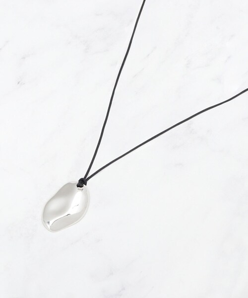 【デザインポイント】 マットなサテンコードと表面に凹凸のある変形メタルパーツを組み合わせたロングネックレスです。 無機質なメタルに、手仕事のようなニュアンスを加えたトップデザインが特徴。 コードの結び目で長さを自由に調節できるため、その日のトップスに合わせてベストなバランスで着用できます。 【スタイリングポイント】 シンプルなクルーネックのトップスやボートネックのニットなどに合わせると、縦のラインが強調され、着こなしにメリハリが生まれます。 カジュアルなTシャツスタイルも、このネックレスをプラスするだけで洗練された大人の印象に。 調節次第で重ね付けにも使いやすいアイテムです。 ※照明の関係により、実際よりも色味が違って見える場合があります。また、パソコン・スマートフォンなどの環境により、若干製品と画像のカラーが異なる場合もございます。 店舗へのお問い合わせ商品番号:127-05310 ●製品寸法: 00:全長67cm モチーフH4.3cm モチーフW2.7cm 備考: