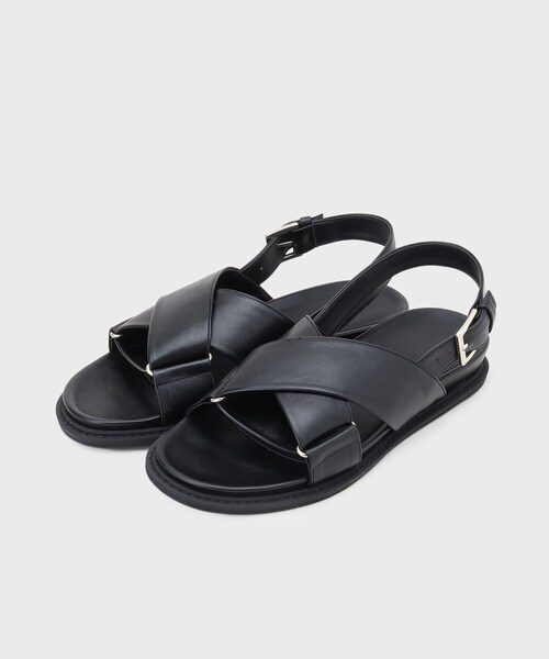 【デザインポイント】 甲を覆うように施されたクロスデザインが、カジュアルすぎない洗練された足元を演出します。 露出を控えめに設計することで上品な印象をキープ。 インソールまでレザー調素材でくるむことで、統一感のあるモードな表情に仕上げました。 長さ調節が可能なバックストラップとカップインソールで、フィット感と安定した歩行をサポートします。 【スタイリングポイント】 シンプルなデザインながら存在感があり、幅広いスタイルに馴染みます。 リネン素材のロングスカートやきれいめなスラックスの足元に合わせれば、大人の抜け感をプラスできます。 Tシャツとデニムといったカジュアルなスタイルも、足元をモダンに引き締めてくれる一足です。 ※照明の関係により、実際よりも色味が違って見える場合があります。また、パソコン・スマートフォンなどの環境により、若干製品と画像のカラーが異なる場合もございます。 店舗へのお問い合わせ商品番号:127-05204 ●製品寸法: 25(22.5cm):ヒール高2cm 35(23.5cm):ヒール高2cm 45(24.5cm):ヒール高2cm 備考:重量:片足約160g(サンプルサイズ)
