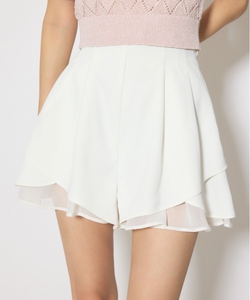【シアーなシフォンとのコントラストが際立つキュロット】■ポイントレイヤード感がポイントのキュロットが登場。一番下の生地をシフォンにすることで、軽やかさをプラス。■ディテール裾に向かってしっかりフレア感を出したキュロットデザインにしました。また、まるでチューリップのようなレイヤード感を出し、華やかでフェミニンな雰囲気をこれ1着で表現できるようにしています。■スタイリングカラーを合わせて作成した【110JS730-1241】2WAYビジューオフショルブラウスとセットアップとして着用するのも今年らしくて可愛いですし、シンプルなTシャツ合わせもお勧めです。■生地透け感:上/無し、下/あり裏 地:あり伸縮性:なし光沢感:なし厚 さ:上/中肉、下/薄手■商品のお気に入り登録お気に入りアイテムの再入荷・在庫1点などの通知を受け取ることができます。■ブランドのお気に入り登録新作アイテムの入荷や人気アイテムの再入荷、おすすめトピックスなど、いち早くブランドの情報を受け取ることができます。[注意事項]※弊社管理上のカラーを表記しており、タグのカラー表記と異なる記載となっている場合がございます。※商品画像の色味は、屋外や屋内の光の照射や角度により実物と色味が異なる場合がございます。※着用、お取り扱いの際は、アテンションタグをご確認ください。rienda BRAND CONCEPT女性らしさに大人なエッジを効かせ艶やかさに人を魅了させるそんなセンシュアルなデザインを表現~The beauty of being yourself is essential~こちらの商品はrienda独自の採寸方法となっています。本サイトのサイズガイドと採寸方法が異なる場合がありますのでご了承ください。