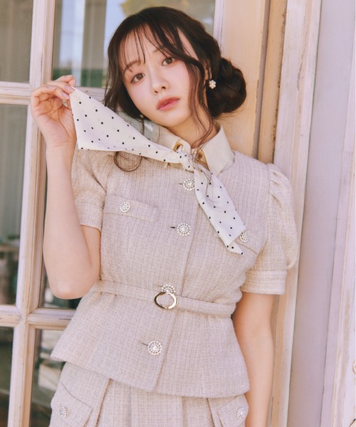 【ノーカラーでスタイリッシュな雰囲気にペプラム風で可愛く着用できるコンパクトジャケット】 セットのスカートはこちら<ミニ丈:110JS931-0741・ロング丈:110JS931-0751> ■ポイント riendaオリジナルツイード生地で製作した春のツイードシリーズ。 素材を2種類採用し、その中で3型のデザインを展開しています。 1つはこちらのコンパクトジャケット。 ノーカラーでスッキリした襟周りに対して、フロントには煌びやかなビジューボタンを施し華やかな印象に仕上げました。 ■ディテール ウエスト位置を高く設定し、共ベルトを付けることでペプラム風に着用できるのがデザインポイントです。 ジャケットの部類ですが、コンパクトなサイズ感のためスタイリングによってはトップス風にも着用できます。 ■スタイリング 110JS931-0741・サイドラップツイードスコートショートパンツと同じ生地で製作しているのでセットアップで着用すると今時なワンホンコーデが叶います。 また襟やリボンがある布帛のブラウスを合わせるときは、その襟やリボンをノーカラーの部分に出すと華やかなスタイリングに決まっておすすめです。 ■生地 透け感:なし 裏 地:あり 伸縮性:なし 光沢感:なし 厚 さ:あり ■商品のお気に入り登録 お気に入りアイテムの再入荷・在庫1点などの通知を受け取ることができます。 ■ブランドのお気に入り登録 新作アイテムの入荷や人気アイテムの再入荷、おすすめトピックスなど、いち早くブランドの情報を受け取ることができます。 [注意事項] ※弊社管理上のカラーを表記しており、タグのカラー表記と異なる記載となっている場合がございます。 ※商品画像の色味は、屋外や屋内の光の照射や角度により実物と色味が異なる場合がございます。 ※着用、お取り扱いの際は、アテンションタグをご確認ください。 rienda BRAND CONCEPT 女性らしさに大人なエッジを効かせ 艶やかさに人を魅了させる そんなセンシュアルなデザインを表現 ~The beauty of being yourself is essential~ こちらの商品はrienda独自の採寸方法となっています。本サイトのサイズガイドと採寸方法が異なる場合がありますのでご了承ください。