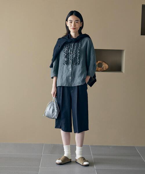 【クロワッサン 1160号】掲載商品 LOISIRが定番で使用しているグランジリネンのフリルブラウス。 【素材】 LOISIR(ロワズィール)の定番素材「グランジリネン」。 原料にヨーロッパ産のリネンを使用し、小ロット染め、天日干しなど手の込んだ洗いざらしのような風合いのこだわりの素材です。 リネンの価格は年々高騰しており高級天然素材になっています。 【アイテム】 フロントのフリルが特徴的なブラウス。 フリルは断ち切りにし、時間が経つにつれヴィンテージのような“アジ”が出ます。 身頃はすっきりと、袖に切り替えを入れふんわりとしたボトルシルエットに仕立てています。 リネンならではの大人カジュアルアイテムです。 ※画像の商品はサンプルです。実際の商品とは仕様・加工・サイズ・素材が若干異なる場合がございます。 ※画像の商品は光の照射や角度により、実物と色味が異なる場合がございます。予めご了承ください。 ---------------------------------------------------------------------- ■洗濯:手洗い〇 ■透け感:シロはややあり ■裏地:なし ■伸縮性:なし ■光沢感:なし ---------------------------------------------------------------------- 【ブランド情報】 LOISIR <ロワズィール> 上質なリネンがベース。 天然素材の心地よさにデザイン性を重ねた大人のためのスタンダード。 袖を通した時にわかる普遍性とデザイン性、そして清潔感。 リラックスした雰囲気がありながらも細部まで行き届いた凛とした作りは、 こころに寄り添うような贅沢な着心地。 ずっと愛される服を目指して。 ---------------------------------------------------------------------- 【お気に入り登録】がオススメです!! □商品のお気に入り登録□ 再入荷、残り1点、セールなどの通知を受け取ることができます。 →商品ページ ♡ をクリック ■ショップのお気に入り登録■ 新商品や再入荷、クーポン発行、ショップニュースなど、いち早くショップの情報を受け取ることができます。 →「♡お気に入りショップに追加」 をクリック ----------------------------------------------------------------------
