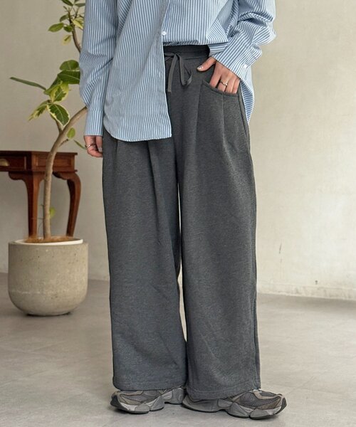 穿くだけでこなれる◎絶妙シルエットの2タックバレルパンツ フロントに入った2タックが、気になる腰回りや脚のラインをカバーしつつ、立体感のある美しいバレルシルエットを演出します! スウェットのようなリラックス感のある素材で、一日中ストレスフリーな穿き心地を実現しました◎ カジュアルながらもラフすぎない絶妙なデザインは、おうち時間からタウンユースまで幅広く活躍する一着です。 【POINT】 ・脚のラインを拾わない、丸みを帯びたトレンドのバレルシルエット ・ウエストのタックデザインが、シンプルな中にアクセントをプラス ・ウエストは総ゴム&ドロスト仕様で、楽な穿き心地とサイズ調整のしやすさを両立 【STYLING】 ・コンパクトなリブニットを合わせ、パンツのシルエットを際立たせたメリハリのあるスタイル。ローファーを合わせれば、きれいめカジュアルに仕上がります。 ・オーバーサイズのTシャツやスウェットを合わせたリラックスコーデ。キャップやスニーカーをプラスすれば、こなれ感のある大人の休日スタイルが完成します。 【KEYWORD】 春服 ※生産の都合上、お届け時期が前後する場合がございます。ご注文いただいた予約商品のお届け時期の確認は、注文履歴ページより行えます。 ※個体差があるため、サイズが1~2㎝程異なる可能性がございます。 ※お色物は色移りする可能性がございます。着用、お取り扱いは商品についておりますアテンションタグを必ずご確認ください。 ※商品画像はサンプル品を使用しているため、実際の商品と仕様、加工、サイズが若干異なる場合がございます。また、可能な限り実物に近いカラーにて掲載していますが、使用しているパソコンのモニター設定や、 携帯電話のメーカー・機種により実際のカラーと異なって見える場合がございます。予めご了承ください。 *********************** 商品の特徴 透け感:なし 裏地:なし 伸縮性:あり 光沢感:なし 生地の厚さ:普通 洗濯・取り扱い 洗濯:液温は40 ℃を限度とし、洗濯機で弱い洗濯ができる クリーニング:弱い操作によるウエットクリーニングができる タンブル乾燥:タンブル乾燥禁止 アイロン:アイロン仕上げ禁止 ***********************