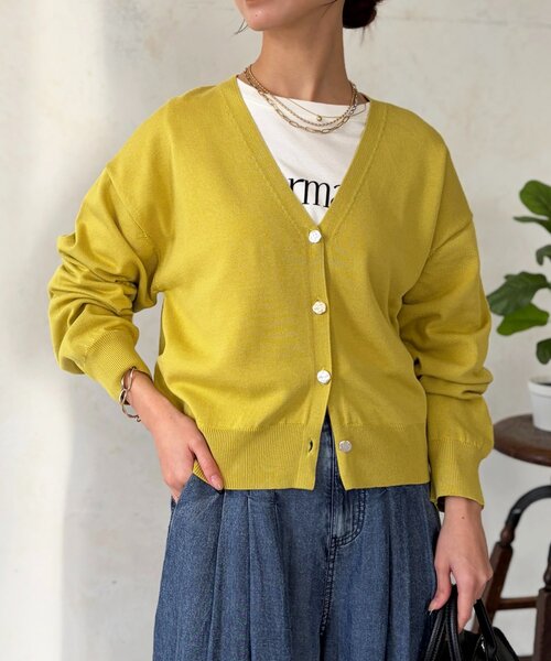 コーデを華やかに見せてくれるニュアンスボタンカーディガン ■point シンプルなデザインなのでカジュアルにもきれいめスタイルにも合わせやすいカーディガン。 ゴールドボタンがいつものスタイルに合わせるだけで華やかに♪ 季節の変わりめの羽織りとしてはもちろんボタンを閉めて一枚着としてもおすすめです! ■coordinate カジュアルなデニムや、きれい目なナロースカートなど様々なボトムスと合わせていただけます。 ▼オススメスタイリング▼ プリーツナロースカート とろみイージーパンツ 落ち感フレアテンセルパンツ パイピングナロースカート ■fabric レーヨン67% ポリエステル33% -------------------------------------------------- 裏地:なし 光沢感:なし 伸縮性:あり 生地の厚さ:普通 洗濯方法:手洗い可 -------------------------------------------------- ※生産の都合上、お届け時期が前後する場合がございます。 ご注文いただいた予約商品のお届け時期の確認は、注文履歴ページより行えます。 ※商品画像は製品前サンプルにより着用イメージです。 光や角度により、実物と色味が異なる場合がございます。また表示のサイズ感も実物とは若干異なる場合もございますので、ご了承ください。 ※着用、お取り扱いの際は、商品についている品質表示とアテンションタグを必ずご確認ください。 -------------------------------------------------- ♡をクリックでお得な情報をお知らせいたします。 <商品お気に入り登録> お気に入りアイテムのお値下げ・再入荷・在庫ラスト1点など通知を受けることができます。 <ブランドお気に入り登録> Chez toiの新商品・再入荷・SALE・クーポン配布などお得な情報を受けることができます。 -------------------------------------------------- Cheztoi/シェトワ フランス語で「あなたの家」という意味。 自分にまっすぐでそしてしなやかに生きる女性に向けたブランドです。