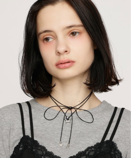 ■POINT立体感のあるスターモチーフが印象的なチョーカー。■DETAIL存在感のあるスターチャームがアクセントになりながらも、程よいサイズ感で首まわりに馴染むのでデイリー使いしやすいです。エンドパーツにはハートモチーフとスターモチーフを使用し、左右で違うところもさりげないポイントに。■STYLINGTシャツやスウェットなどカジュアルなスタイルに合わせるのはもちろん、ミニマルなコーディネートのアクセント使いにもおすすめです。■FABRIC/MATERIAL真鍮、紐部分はナイロン素材を使用。※お取り扱い上のご注意・体質によってはかぶれ等を生じる場合がありますので、皮膚に異常を感じた時は、ご使用をお止めいただき、専門医にご相談下さい。・水、汗、消毒液などに触れたり、皮脂及び汚れの蓄積により変色や変質する場合があります。・定期的にふき取りのメンテナンスをお願いします。・消毒液が製品に直接かかる事が無いようご注意下さい。[注意事項]※画像の商品はサンプルです。実際の商品と仕様、加工が若干異なる場合があります。※画像の商品は光の照射や角度、お使いのモニター環境により、実物と色味が異なる場合がございます。※着用、お取り扱いの際は、アテンションタグをご確認ください。※一部予約商品につきましては生産上の都合によりお届け予定日や店頭発売と前後する場合もございます。※追加生産商品は、一部の店舗、通販で販売中の場合がございます。予めご了承下さい。※こちらの商品はSLY独自の採寸方法となっています。本サイトのサイズガイドと採寸方法が異なる場合がありますのでご了承ください。【SLY/スライ】「Casual」「Girly」「Mode」をベースに発信する、ディテールへのこだわりが詰まった、どこか必ず女性らしさを感じるアーバンスタイル。 さまざまなエッセンスをミックスした、時代の空気を体現するコレクションを展開。▼商品のお気に入り登録お気に入りアイテムの値下げ・再入荷・在庫1点などの通知を受け取ることができます。▼ブランドのお気に入り登録新商品や再入荷、セール、クーポン配布などお得な情報を受け取ることができます。