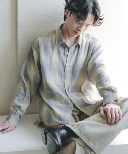 【絶妙なルーズシルエット。季節を彩るニュアンスカラーシャツ】 ・昨年秋に好評だったほどよくシアーなオンブレチェックシャツが、新色を携えて登場。ほどよいルーズシルエットで抜け感ある仕上がりに。 ・人気カラーに加え、春らしいイエロー×グレー、着回しやすいブラック×グレーの3色展開。コーディネートに奥行きを与える絶妙な配色が魅力です。 ・さらりとしたドライタッチな質感で、春から夏手前までロングシーズン快適に着用いただけます。 material これからの季節で長く活躍するシアーな生地を採用。上品な透け感がカジュアルなチェック柄を大人っぽく格上げし、気温の上がる時期でもベタつかず快適な肌触りをキープします。 styling ワイドテーパードパンツを合わせたクリーンな装いがおすすめ。インナーにロンTを差し込み、前を開けて軽快に羽織るだけで、素材のコントラストが際立つ旬なスタイルが完成します。 【2026 Spring/Summer】【26SS】 ※商品画像は、光の当たり具合やパソコンなどの閲覧環境により、実際の色味と異なって見える場合がございます。予めご了承ください。 ※商品の色味の目安は、商品単体の画像をご参照ください。 ▼お気に入り登録のおすすめ▼ お気に入り登録された商品は、マイページにて現在の価格情報や在庫状況の確認が可能です。 お買い物リストの管理にぜひご利用ください。 素材感 透け感 : ややあり 伸縮性 : ややあり 裏地 : なし 光沢 : なし ポケット : なし ML