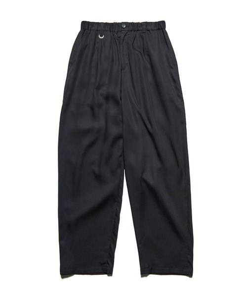 ドレープ性に優れたレーヨン混紡素材を使用した、エレガントなテーパードパンツ。ウエストから腿にかけてのゆとりあるシルエットと、裾に向かう美しいテーパードラインが、リラックス感と洗練さを両立。とろみのある生地が生み出す落ち感は、歩くたびに優雅な表情を見せます。イージーパンツの快適さとドレスパンツの品格を兼ね備えた一本です。