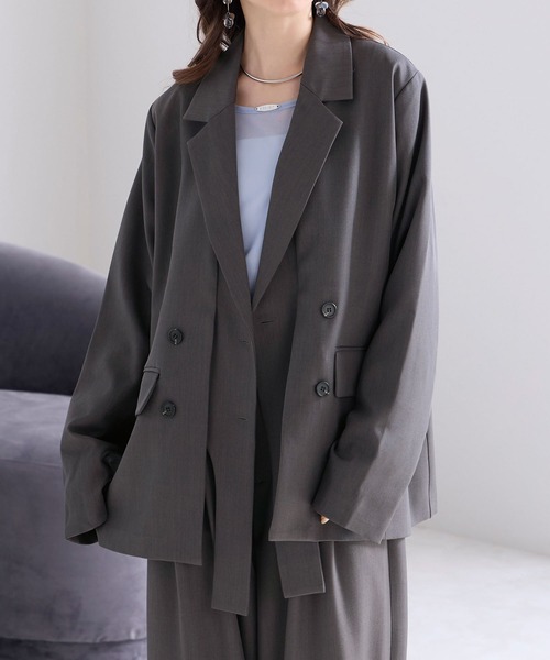 【Fabric】 程よくハリのある素材を使用し、シルエットを美しくキープしてくれるテーラードジャケット。 軽やかな着心地でロングシーズン着用でき、デイリーからきれいめシーンまで幅広く活躍します。 羽織るだけでスタイリングを引き締めてくれる、頼れる一着です。 【Detail】 レイヤードデザインが目を惹く、存在感のあるテーラードジャケット。 ダブル仕様で程よくきちんと感がありながら、堅くなりすぎず、こなれた印象を演出します。 同時リリースの『ツータックワイドパンツ』とセットアップで着用可能で、統一感のある洗練されたスタイルが完成。 フロントには実用性のあるポケットを備えており、デザイン性だけでなく使い勝手の良さも魅力です。 インナーを選ばず合わせやすく、カジュアルからきれいめまで幅広いスタイリングに対応します。 カラーは、シックなチャコールグレー、クリーンな印象のアイボリー、肌なじみの良いベージュ系の3色展開。 【Styling】 セットアップで着用すれば、オンシーンにも映えるきれいめスタイルに。 ミニボトムやワイドパンツと合わせれば、程よく抜け感のあるバランスの取れたコーディネートが完成します。 シアートップスやカットソーをインナーにすれば、女性らしさをプラスしたスタイリングもおすすめ。 オン・オフ問わず活躍する、ワードローブに加えたい一着です。 ▼セットアップ着用可能なアイテム 商品名:ツータックワイドパンツ 問い合わせ番号 店舗:ELIpt1752 ZOZO:102583669 ご使用上のお願い ·生成り、淡色は蛍光増白剤禁止 ·つけ置き禁止 ·形を整えて干す ·濃色と淡色は分けて洗う ·摩擦(特に湿った状態での摩擦)や雨·汗などで、他の衣料やバッグ等の周りのものに色移りすることがありますのでご注意ください。 ·洗濯後は直ちに干してください。 ·この製品は、直射日光等により退色変色する事がありますので、お取り扱いにはご注意ください。 ·この製品は、素材の特性上、洗濯すると縮みますのでご注意ください。 【Elishe/エリシェ】 Elishe(エリシェ)は、“Elegant”と“she”をかけ合わせた造語。 ときめきをくれる一着が、自信に変わる。 何気ない日常も、思い出に変わる。 フェミニン×モードな感性で、大人の今に似合うスタイルを提案します。 ≪お買い物をお楽しみいただくために≫ ■商品のお気に入り登録 完売カラーの再入荷通知や、ラスト1点、セールの通知をお知らせいたします。 ■ブランドお気に入り登録 新商品や再入荷など、いち早くブランドの情報を受け取ることができます。