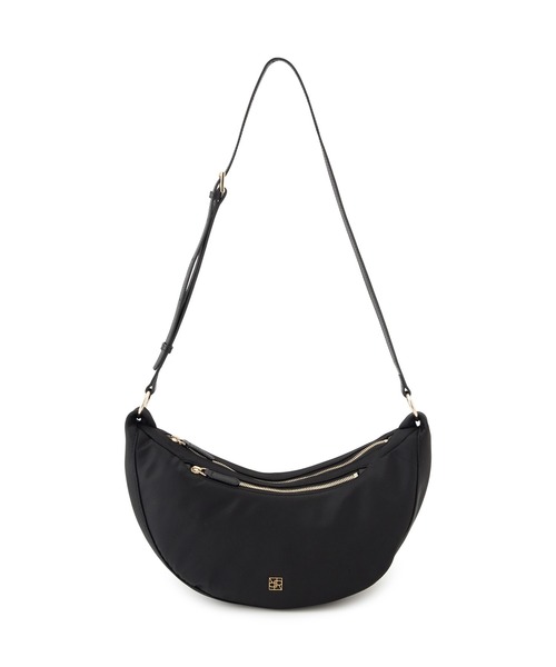 スポーティさと上品さを兼ね備えた、軽量ナイロンショルダーバッグ。 三日月型(ハーフムーン)のフォルムが身体にやさしくフィットし、デイリーに使いやすいデザイ【デザイン】・ナイロン素材を使用したスポーティなショルダーバッグ・ショルダー接合部のリングが特徴的なデザインポイント・ハーフムーン(三日月)型で身体にフィットしやすいフォルム・フロントにROPE'のシグニチャー金属プレートを配置し、高級感を演出・カジュアルやスポーティなスタイルにマッチ・ジャケットスタイルに肩掛けするとエレガントな印象に◎----------------------------ポケット:あり(内側にファスナー1)A4収納:不可ショルダー紐:取り外し不可・調整可開閉部分:ファスナー----------------------------【素材】ナイロンに薄い中綿を入れることで荷物を優しく保護し、身体にあたる際の衝撃を和らげます。本体のナイロンは弱撥水性を備えています。付属のショルダーには牛革の床面にポリウレタン加工とシュリンク型押しを施したスピリットレザーを使用しており、擦れに強く、こちらも弱撥水性があります。裏地はポリエステル製のスエード生地を採用し、荷物を保護しながら手触りも良い仕上がりです。※画像の商品はサンプルです。 実際の商品と仕様、加工、サイズが異なる場合がございます。※撮影場所やライティング、お使いのモニター環境によって色の見え方が異なる場合がございます。※商品のカラーは画像の色味をご参照ください。動画は仕様説明のため、色味が実物と異なる場合がございます。