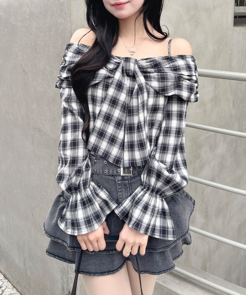 胸元の大きなリボンデザインがインパクト抜群。 オフショルデザインでトレンドのレディコーデが完成するブラウスです。 落ち着いたカラーのチェック柄で大人っぽく着られるのも◎ 調節可能なショルダーストラップは取り外し可能です。 背中部分はフィット感良く着られるシャーリングゴム。 デニムを合わせたカジュアルスタイルもおすすめです。 ・肩紐調整可 ・肩紐取り外し可 【以下クロ/チェック参考。カラーにより多少の誤差あり】 ・透け感:やや透ける ・伸縮性:なし ・生地の厚さ:普通 ・裏地:なし