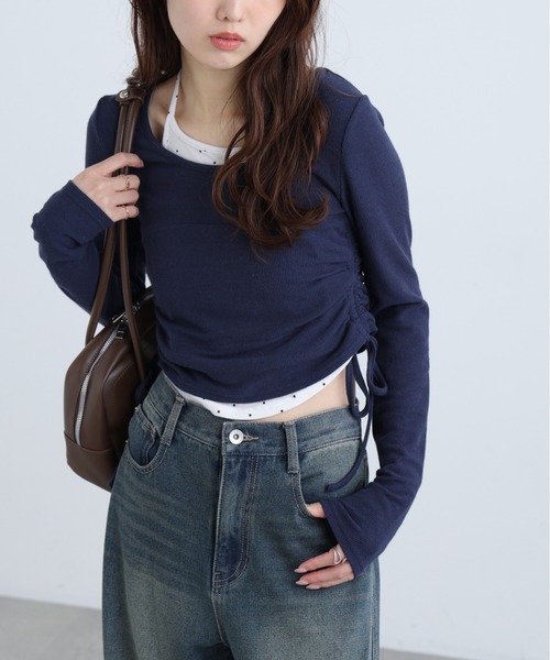 ホルターネックインナーとドッキングしたようなデザインカットソー。 ホルター部分は柔らかい肌触りのフライス素材でアウター側、柔らかいタッチのリブカットソー素材です。 胸部分でドッキングされており、1枚でスタイリングが完成するデザイン。 両脇のドロストで着丈を調整できます。 身頃も袖もフィットするコンパクトなサイジングです。 フィットするサイジングなのでデニム合わせでラフな着こなしがバランスが取りやすいです。 ミニスカート合わせで韓国っぽい着こなしもおすすめです。 ※モデルの着用画像の場合、光の当たり具合により、実際の色味と異なって見えることがございます。色味は、商品単体の画像をご参照ください。 --------------------------------------------------- ◆商品のお気に入り登録◆ お気に入りアイテムの値下げ・再入荷・在庫1点などの通知を受け取ることができます。 ◆ブランドのお気に入り登録◆ 新商品や再入荷、セール、クーポン配布などお得な情報を受け取ることができます。 ---------------------------------------------------