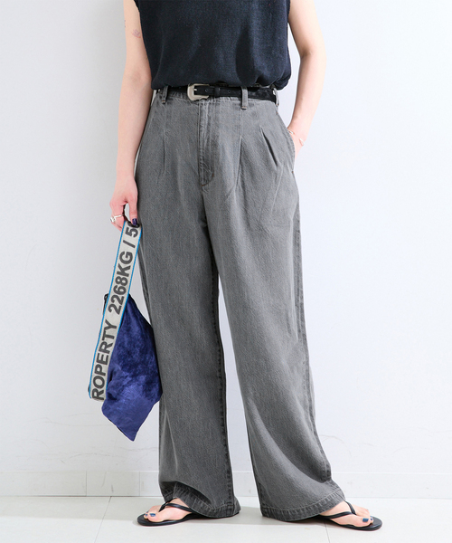 夏に向けても暑さを気にせず着用できるテンセル混NEWデニム。 ※こちらは《品番:25030700159010、25030700159210、25030700159310、25030700183030》の追加商品です。 ・同一商品でも個体差が生じるため、採寸内容に若干の差が生じる場合がございます。 ヴィンテージ加工で濃淡のある色味が雰囲気があり、見た目綿100ながらテンセル混の微艶感とドレープ感がある柔らかな風合いが魅力。 タック入りのトラウザーディテールで、ほどよいワイドストレートシルエット。 洗濯機洗い(弱)可能で気軽にお手入れできるのも嬉しいポイントです。 【DU JOUR/デュ ジュール】 「今」「今日」「旬な」の意味。 気取らない、気負わない、着飾らない…素の自分を少しだけ上げてくれる。 背伸びしなくても、等身大の自分が今っぽくなれる、朝起きたら自然と手にとっているような存在でありたい。こだわりの本格的な素材と妥協のないオーセンティックな仕様、最新の加工テクを駆使しトレンドに合わせて進化する。 ミーハーで、ヘルシーで、今日の私を決めるデニム。 ********************** 透け感:なし 裏地:なし 伸縮性:なし 光沢感:ネイビーのみ微光沢感あり 生地の厚さ:普通 ********************** 【スタッフ着用コメント】 《スタッフ staff.T》 身長:165cm/普段サイズ:M-L/着用サイズ:38 サイズ感:全体的に大きいめのためベルトがあると安心なサイズでした。 素材感:穿き心地の良い柔らかな風合いのデニム素材です。 着心地:バックゴムで穿きやすいデニムです。 ※あくまで個人の感想です。 ********************** ※取り扱いについては、商品についている品質表示でご確認ください。 ・*素材の特性上、摩擦に弱く、特に湿潤時での摩擦は変色や白化の原因になります。 ・単独で洗ってください。 ・形を整えて干してください。洗濯により収縮やねじれ。型崩れすることがあります。 ※グレー(006)カラーについて ・*摩擦によって他のものに色移りすることがあります。*部分的に擦れると、脱色することがありますので、もみ洗いしないで下さい。※ネイビー(040)※ネイビー(040)カラーについて ・この製品はナチュラルな風合いをお楽しみいただけるよう、特殊な加工を施しています。そのため、一点一点に微妙な色、サイズ、風合いなどの違いがあります。 ※こちらの商品は、B.C STOCKでの取り扱いになります。 直接店舗へお問い合わせの際はB.C STOCK店舗へお願い致します。 ※照明の関係により、実際よりも色味が違って見える場合があります。またパソコン・スマートフォンなどの環境により、若干製品と画像のカラーが異なる場合もございます。 ※商品の色味は、商品アップ画像をご参照ください。 グレー、ブルー着用スタッフ:163cm 着用サイズ:38 ネイビー着用スタッフ:157cm 着用サイズ:36 詳細着用モデル:163cm 着用サイズ:36、38 本体:洗濯機洗い(弱)