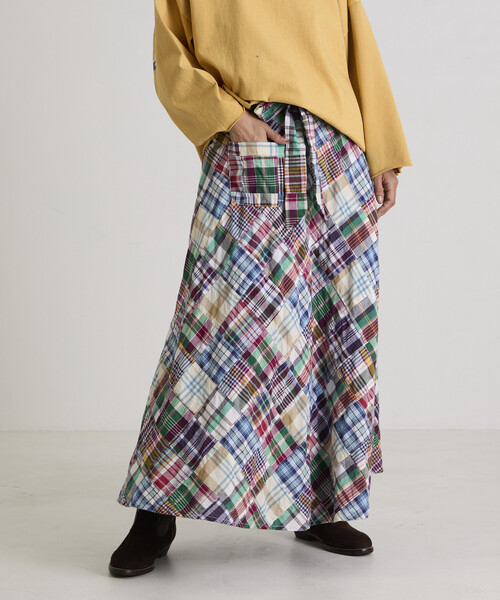 FREAK‘S STOREのハウスブランド「Freada/フリーダ」より、2026 Spring & Summer itemコレクションが登場。 2026 Spring & Summer item 表情豊かなパッチワークマドラスチェックが映える巻きスカート ●インドのチェック生地の残反をパッチワークして作られた素材を使用し、巻きスカートに仕立てました。●さまざまなマドラスチェックを組み合わせ、シンプルながらも目を引くデザインに。●両サイドにはアウトポケットを配し、長めのウエストベルトは前・後ろ・脇など、結ぶ位置をアレンジして着用できます。●腰回りはすっきりと、裾に向かって広がるフレアシルエットです。●Tシャツやタンクトップを合わせたシンプルなスタイリングで、スカートの存在感を引き立てるのがおすすめです。 --------------------------------------------------------お気に入り登録のオススメ▼商品のお気に入り登録▼再入荷、残り1点、セールなどの通知を受け取ることができます。▼ブランドのお気に入り登録▼新商品や再入荷、ショップのおすすめトピックスなど、いち早くブランドの情報を受け取ることができます。--------------------------------------------------------※商品の色味は、商品詳細画像、生地寄り画像をご確認ください。 ※掲載画像の商品の色味は、屋外や屋内の光の照射や角度により実物と色味が異なる場合がございます。また表示のサイズ感と実物は若干異なる場合もございますので、予めご了承ください。 ※着用、お取り扱いの際は、商品についている品質表示とアテンションタグを必ずご確認下さい。【Freada / フリーダ】メキシコの女性画家Frida Kahlo(フリーダ・カーロ)をブランドアイコンに、メキシコらしいビビッドな色合いや柄と、古着を原型としたミリタリー要素をミックスしたブランド。トレンドに左右されることなく形はあくまでもベーシックで、柄と生地にこだわっています。「夏服」「冬服」のように気温で区切らず、着あわせによって長い時期着られるアイテムが多いのが特徴です。