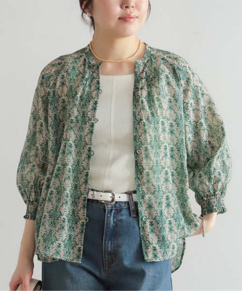 【NOMBRE IMPAIR ノンブルアンペール】2026 Summer Collection / pre order■1枚でぱっと華やぐシアーブラウス女性らしい落ち感のある素材と、ほどよい透け感が魅力のシアーアラベスク柄ブラウス。ふんわりとした袖のボリュームと軽やかな素材感で、涼しげな印象に仕上げました。首元には繊細なピンタックを施し、さりげない立体感をプラス。透けすぎない絶妙なシアー感で、一枚着としても安心感のあるデザイン。前開き仕様なので、羽織としても活躍する着回し力の高さもポイントです。■Coordinateインナーにタンクトップを合わせて、デニムと着こなせば抜け感のあるカジュアルスタイルに。スラックスやジャケットのインに合わせてオフィスにもマッチします。1枚着でも羽織としても活躍するので、ロングシーズン重宝する1枚です。洗濯:手洗い可※画像の商品はサンプルです。実際の商品と色味、仕様、サイズ等が若干異なる場合がございます。※工場の生産の都合上、納期が変更になる場合がございます。発送日の前後については予めご了承ください。