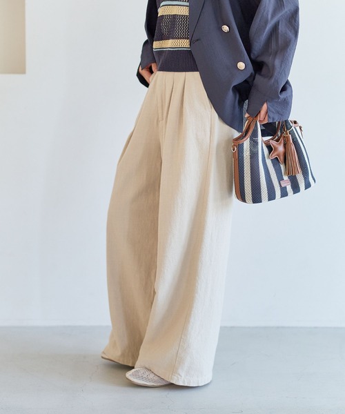 こなれた抜け感とスタイルアップが叶うリネンパンツ ーーー ★おすすめポイント★ [1]春夏にぴったりなリネンコットン素材 [2]ハイウエストデザインでスタイルアップ [3]後ろはゴム仕様でキレイ見えながら楽ちん [4]セットアップでも着用可能 ーーー [fabric] コットンリネン素材に洗いをかけてラフな仕上がりに。 上品なツイル目のしっかりと厚みはある素材ですがさらっとした清涼感があり、春夏にぴったりの着心地。 [design] リラクシーなハイウエストデザインでスタイリングにニュアンスをプラス。 タックと落ち感のある生地でラフなこなれた抜け感に。 適度な張り感があり、シルエットが抜群にキレイ! ウエストは前はすっきり見えのベルトで後ろはゴム仕様で着心地も◎ [styling] ジャストウエストで着用いただくのはもちろん、少し落として裾をたるませ足元を重めにし穿くのも今の気分に。 同素材のジャケットを合わせてセットアップでの着用がおすすめ。 【同素材のアイテムやセットアップ可能なアイテムはこちら】 リネンジャケット(638675) リネンベスト(638678) ※屋外での撮影画像は光の加減で実際の商品より明るく見えたり、風合いが異なって見える場合がございます。 商品の色味はスタジオ撮影の画像を参考にして下さい ------------------------------------- ≪お買い物をよりお楽しみいただくために≫ ◆商品のお気に入り登録(ハートマークをクリック) 完売カラーの再入荷通知や、完売間近の通知、セールの通知も受けることができます。 ◆ブランドのお気に入り登録 新商品や再入荷など、いち早くブランドのお得な情報を受け取ることができます。 -------------------------------------