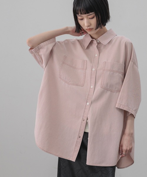 ■素材■ 軽さもあり、ソフトな風合いが特徴のデニムシャツ。 ほどよく縦落ち感のある素材で加工感のある仕上がりとなっています。 ■デザイン■ 1枚あると便利なBIGサイズデニムシャツ。 カジュアルな加工感がポイントです。 オーバーサイズなので、羽織としても使いやすく汎用性のあるアイテム。 盛夏に向けて使用いただける素材感もポイントです。 ■スタイリング■ ゆったりめのシルエットなのでタイトスカートなどとも相性良く着用いただけます。 今年トレンドのワイドなシルエットボトムやスウェットパンツ合わせもおすすめです。