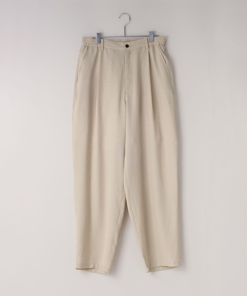 ■素材表情のあるざっくりとした組織で、ドライタッチで清涼感のある風合いに仕上げています。吸水速乾性と接触冷感性が有り、さらっとした着心地で快適に着こなせる素材です。■デザイントレンドライクなカーブシルエットパンツになります。計算されたカーブシルエットが脚のラインを美しく見せ、着やせ効果も◎ウエストはイージー仕様なので、ストレスフリーな穿き心地です。