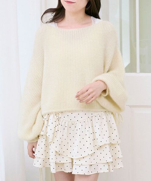 ふわっと軽く、きらっと華やぐ。表情を変えられるゆるニット ■デザイン ふわふわとした起毛感のある素材の中にさりげなくラメが輝くニットトップス。 動くたびに上品にきらめき、シンプルながらもコーディネートの主役になる一着です。 裾にはドローストリングを施し、絞り具合によってシルエットのアレンジが可能。 その日の気分やボトムに合わせて着こなしを楽しめます。 レイヤードスタイルにもぴったりの万能アイテムです。 ■サイズ感 全体的にゆとりのあるサイズ感。 裾のドローストリングを絞ることで、着丈やシルエットのバランス調整が可能です。 ■スタイリング キャミソールやタンクトップ、キャミワンピースの上に重ねればトレンド感のあるレイヤードスタイルに仕上がります。 裾を絞ってスカートと合わせれば、女性らしいシルエットに♪ ・・・・・・・・・・・・・・・・・・・・・・ 透け感:なし 裏地:なし 伸縮性:あり 光沢感:あり 生地の厚さ:普通 ・・・・・・・・・・・・・・・・・・・・・・ ■商品のお気に入り登録:再入荷通知やのこりわずか、お得なプライスダウンの情報も受け取ることができます。 ぜひご登録ください◎ ※サンプルでの撮影の為、製品と仕様が異なる場合がございます。 ※商品の色味は、撮影場所や光のあたり具合などにより色味が違って見える場合がございます。 また、お客様のお使いのモニター環境などにより色味が異なって見える場合がございます。 予めご了承の上ご注文下さい。