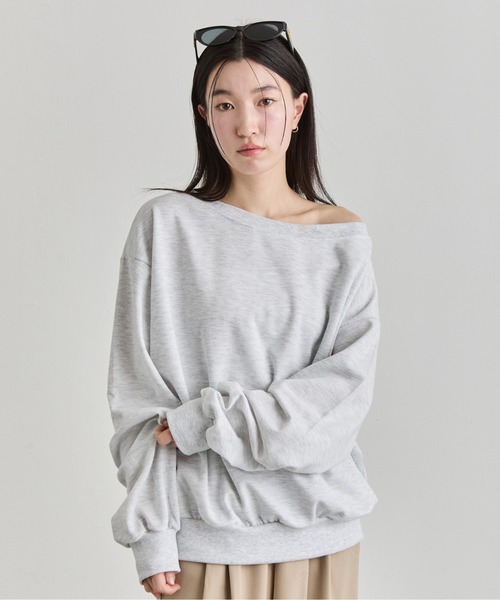 <POINT> ゆるやかに開いたボートネックが印象的なスウェットトップ。肩まわりをすっきり見せるネックラインで、抜け感のあるシルエットに仕上げました。全体はリラックス感のあるルーズフィットで、やわらかな雰囲気を演出。裾と袖口のリブがシルエットを程よく引き締め、バランスよく着こなせる一枚です。 <STYLING> ワイドパンツやスラックスと合わせて、力の抜けた大人カジュアルに。スカートと合わせればやわらかく女性らしいスタイルにもマッチします。オフショルダー気味に着て、ラフなニュアンスを楽しむのもおすすめです。 〈 素材感 〉 生地:普通 透け感:ない 伸縮性:あり 裏地:ない NUJOH ㅣ ヌゾ 「느낌이 좋아(Good Feeling)」という韓国語の略語。 * トレンドよりも“気分の良さ”を優先する感性重視のスタイル * テクスチャーとシルエットにこだわり、日常に特別な気分を与える提案 * ソフトで感覚的なデイリーウェアを融合させたコンテンポラリーブランド 《お気に入り登録》でお得な情報がいっぱい ・「商品のお気に入り登録」で再入荷通知や、ラストの通知、セール通知も受け取ることができます。 ・「ブランドのお気に入り登録」で新商品や再入荷など、お得な情報を受け取ることができます。 ・ブランドが気になる方はインスタをチェック! ⭐︎instagram : @__nujoh