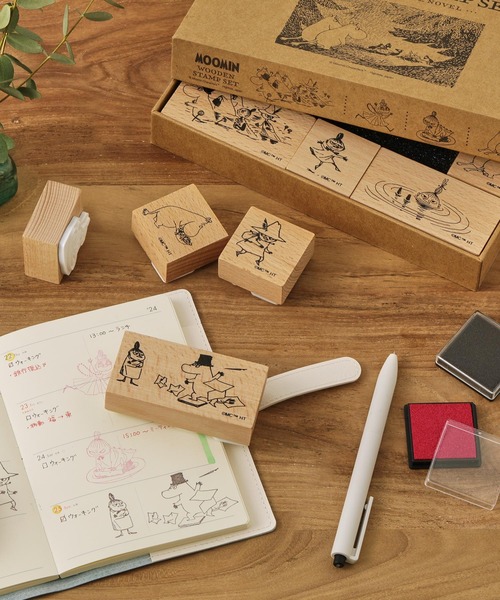 ウッドスタンプとスタンプパッドのセット 大小さまざまな9個のウッドスタンプと3色のインクパッドからなる、ムーミンのスタンプセットです。 小説から着想を得た3種類のセットをご用意しており、スタンプの絵柄とインクパッドのカラーもそれぞれ異なります。メッセージカードや招待状などギフトシーンでのアレンジや、手帳などのデコレーションにも重宝します。紙箱入りでムーミン好きな方への贈り物にもおすすめです。 ■サイズ パッケージ:幅22.0 × 高さ13.2 × 奥行3.4 (cm) スタンプ(小):幅4.0 × 高さ4.0 × 奥行2.5 (cm) スタンプ(大):幅8.0 × 高さ4.0 × 奥行2.5 (cm) インクパッド:幅4.0 × 高さ4.0 × 奥行0.12 (cm) ■インク色 その他1:ピンク/グリーン/パープル その他2:オレンジ/ライトブルー/ネイビー その他3:ダークブラウン/ビビットピンク/ミント 内容:スタンプ(小)×6個、スタンプ(大)×3個、インクパッド×3個 ■ブランド:MOOMIN 作者トーベ・ヤンソンが夏の間に過ごしたアトリエは歩いて回れるほど小さい島の隠れ場所。彼女がずっと大切にしてきたこの世界観はムーミンの物語となり、いまなお多くの人に愛されています。長い間親しまれるムーミンの物語のようにいつまでも宝物にしてもらえるような、ぬくもりあふれるシリーズです。 【注意事項】 ・お子様の手の届かない場所に保管し、本来の用途以外のご使用はおやめください。 ・平らな面に押してください。 ・破損の原因になるため、印面ゴムの部分を指や尖ったもので強く擦らないでください。 ・火気の近くや高温になる場所には置かないでください。 ©Moomin Characters™
