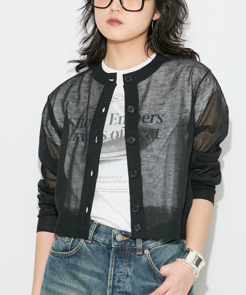 【2026 SS】 JOURNAL STANDARD L'ESSAGE 軽やかなシアー素材が魅力のニットカーディガン。 程よい透け感がスタイリングに上品な抜け感を与え、大人の女性らしい洗練された印象に仕上がります。 薄手ながら形をきれいに保つ編地で、Tシャツの上にさらりと羽織るだけでこなれた雰囲気に。前を閉じてコンパクトなトップスとして着用すれば、より女性らしいバランスを楽しめます。 春から秋まで長く活躍し、室内の冷房対策としても重宝する万能アイテム。軽やかな質感ながら、着こなしにしっかり存在感を加えてくれる一枚です。 同シリーズのキャミとのアンサンブルな着こなしもおすすめです。 同シリーズでキャミもご用意 ALLONGE キャミ(品番:26080370203020) ********************** 透け感:あり 裏地:なし 伸縮性:多少あり 光沢感:なし 生地の厚さ:薄手 ********************** 【スタッフ着用コメント】 《スタッフK》 年齢:20代後半/身長:162cm/着用サイズ:FREE サイズ感:着丈はコンパクトですがゆったりしていて体のラインを拾いにくいです。 素材感:さらっとした触り心地のニット 着心地:軽くて羽織りやすいです。シアーなので長いシーズン羽織れそうです。 ※あくまでも個人の感想です。 ********************** ※取り扱いについては、商品についている品質表示でご確認ください。 ※照明の関係により、実際よりも色味が違って見える場合があります。 またパソコン・スマートフォンなどの環境により、若干製品と画像のカラーが異なる場合もございます。 ※商品の色味は、商品アップ画像をご参照ください。 本体:手洗い可能