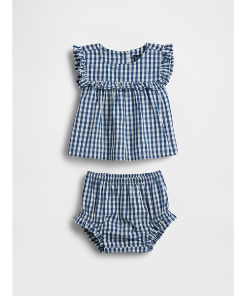 オーセンティックなノンストレッチデニムトップスとブルマのベビー用セット ラウンドネック、背面スナップボタンプラケット ノースリーブ アームホールまわりと前後のヨーク部分にラッフルフリル装飾 ブルマ: ウエストゴム仕様、脚ぐりゴム、裾ラッフルフリル 全体にギンガムチェック柄 サステナビリティ: このデニムコーデセットは独自の洗浄技術「ウォッシュウェル」を使って生産しています。「ウォッシュウェル」は従来の方式に比べて20%以上の節水を実現する洗浄技術です。 よりサステナブルなコットン: リサイクルコットンを5%使用しています。リサイクル素材を使うことで、バージン材の使用を減らし、資源の節約と廃棄物の削減につながります。 この商品は、RISE (Reimagining Industry to Support Equality) を通じてジェンダー平等と女性のエンパワーメントを精力的に推進する工場で生産されています。 *商品タグに記載の価格とサイト上の販売価格が異なる事があります。 【Gap ギャップ】1969年にアメリカ・サンフランシスコで創業以来、世界的なカジュアルファッションブランドとして、常にモダンなアメリカンカジュアルを提案し続けています。