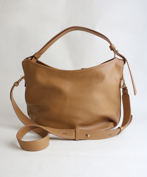 柔らかいレザーが、程よいリラックス感を演出。カチッとしすぎないこなれたデザインです。計算された金具の使い方が、ミニマルで洗練された印象を与えます。A4ファイルやペットボトルなども収納可能。
