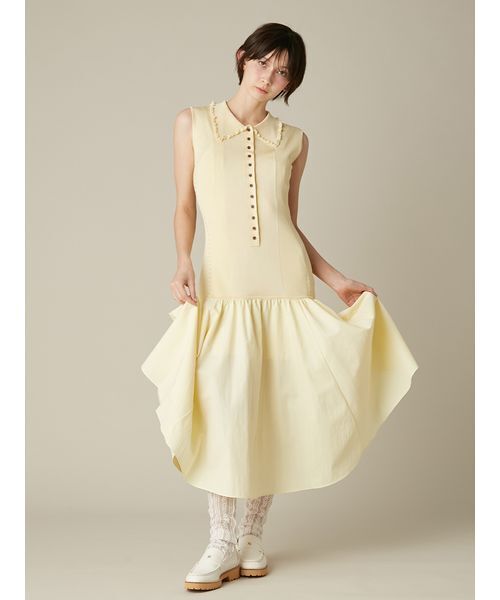 身体のラインを立体的に見せるポロシャツデザインを、艶のある糸で編み立てたニットワンピース。フリルやケーブル模様を取り入れ、編み地に多彩な表情を加えた仕様になっております。ローウエスト位置で切り替えを入れ、スカート部分には布帛を使用。ニットと布帛を組み合わせることで華やかさを引き立て、日常から食事のシーンまで幅広く着用可能なアイテムです。 透け感;なし 裏地;あり 伸縮性;あり 光沢感;なし 生地の厚さ;やや薄手 ※照明の関係により、実際よりも色味が違って見える場合があります。 またパソコン・スマートフォンなどの環境により、若干製品と画像のカラーが異なる場合もございます。予めご了承ください。 商品の色味は、商品単品画像をご参照下さい。 ※商品画像はサンプルのため、色味やサイズ等の仕様に変更がある場合がございますので、予めご了承ください。