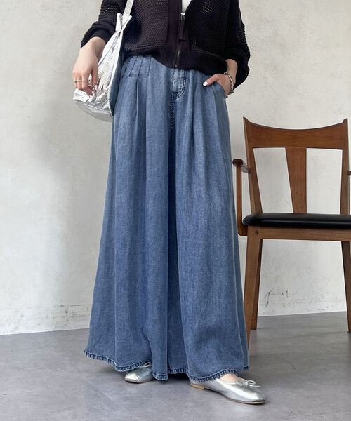 軽やかな素材感がトレンドライクな1着‐POINT‐・ソフトな風合いのテンセルデニム・ややワイドで身体のラインを拾わないシルエット・ウエスト位置にはタックを施し、きれいな落ち感シルエット・ほんのりと優しい光沢感がある為、シーンレスに着回せる--------------------------------お手入れ:液温30℃を限度とした、非常に弱い洗濯処理ができる透け感:なし裏地:なし伸縮性:なしポケット:あり光沢:ややあり生地感:普通--------------------------------【♡をクリックでお得な情報をお知らせいたします】〈商品のお気に入り登録〉お気に入りアイテムのお値下げ・再入荷・在庫ラスト1点など通知を受けることができます。〈ブランドのお気に入り登録〉un dix corsの新商品や再入荷、セール、クーポン配布などお得な情報を受けとることができます。--------------------------------※掲載商品のお色味は撮影場所やお使いのモニター環境により若干異なる場合がございます。特に、ロケ撮影では明るく見える傾向にございます。予めご了承ください。※生産の都合上、お届け時期が前後する場合がございます。※着用、お取り扱いの際は商品についている品質表示とアテンションタグを必ずご確認ください。※本商品は畳んだ状態で袋に入れて入荷するため、開封時に折りシワが生じる場合がございます。ご着用前に整えていただくことで、きれいにお召いただけます。