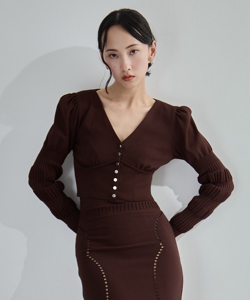 〈デザイン〉 ・STUDIOUSでしか買えない別注商品 ・FETICOらしい立体感のある編みが特徴のショートニットカーディガン ・コルセットライクな切り替えとショート丈でスタイルアップ ・着脱しやすいフロントスナップボタン仕様 ・バックオープンデザインでレイヤードしやすく、デニム合わせも◎ ・別注 MESH KNIT MAXI SKIRTセットアップでの着用もおすすめ 〈素材〉 透け感 なし 裏地 なし 伸縮性 あり 洗濯:ドライクリーニング推奨 メーカー品番:FTC262-0720 FETICO 2020年にデザイナー舟山瑛美とパタンナー高浜温子がフェティコ(FETICO)をスタート。ブランド名は、デザイナーを務める舟山瑛美のニックネームから名付けられている。 ブランドの着想源となるのは、女性の造形美を強調するスタイル。女性の美意識や身体観を独自の視点で再構築し、様々な要素を組み合わせながらユニークで新しい女性像を提案する。 ラインナップするアイテムは、透け感や光沢のある素材を用い、女性の体のラインを美しく見せるシルエットに仕立てている。日本国内で生産されているのも特徴で、素材だけでなく縫製のクオリティの高さもブランドの強みとなっている。---------------------------------------------------- 【お買い物をよりお楽しみいただく為に】 ▼商品のお気に入り登録をおすすめします! ♡をクリックしてください。 完売カラーの再入荷や、ラスト1点の通知、セールの際の通知を受ける事ができます。 ブランドのお気に入り登録もご一緒にお願い致します。 ※店舗と在庫を共有しておりますので、受注確認メールが届いてもご注文のタイミングによりましては売り切れになる可能性がございますので、予めご了承ください。 ※商品の色味につきまして、撮影環境、お客様のお使いのPCのモニター環境により実際のカラーと画像の色味が違って見える場合が御座います。予めご了承の上、ご注文下さい。